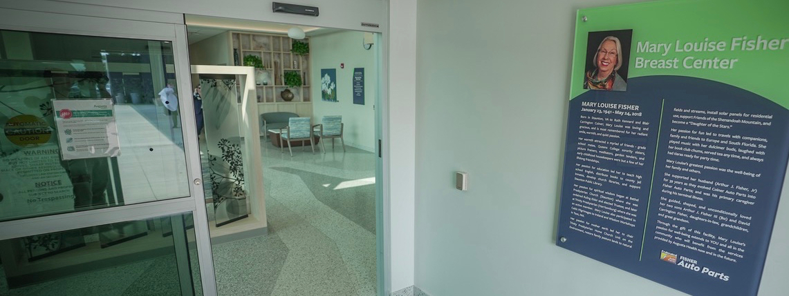 On Tuesday, June 13, 2023, Augusta Health unveiled the naming of its latest health-care facility—the MARY LOUISE FISHER BREAST CENTER. Five years prior, Mary Louise “made the transition” (her words) beyond this earthly plane. This modern facility was created greatly aided by a $1 million donation from Fisher Auto Parts, the family business.