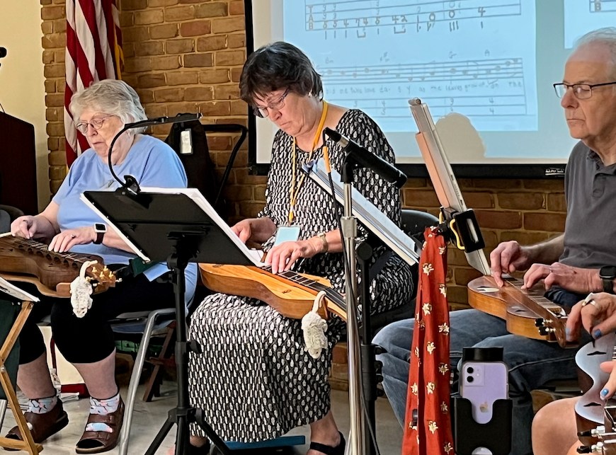 Our October 18 gathering was graced by beautiful autumn weather! We met at the Bridgewater Retirement Community at 1:30 in the Shenandoah Room and were led by Lori Lineweaver and Dinah Ansley, who shared Balm in Gilead and Whispering Hope, and led sing-alongs of I’ve Been Working on the Railroad and Tennessee Waltz. We were entertained by the singing of an original re-working of the Tennessee … Continue reading Autumn Dulcimers